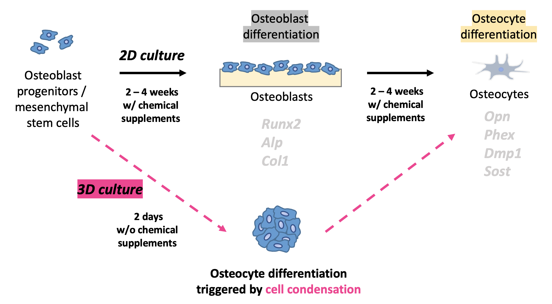 - Inducing osteocyte differentiation of osteoblasts or mesenchymal stem cells in 3D culture models